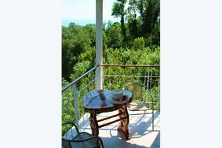 В номерах есть большой балкон с непанорамным видом на море (кусочек моря) и великолепную реликтовую магнолию, которая в июне - июле распускает свои белоснежные огромные цветы прямо у Вас на глазах! Учитывая планировку номера, наиболее удобен он для одной семьи и для пары.